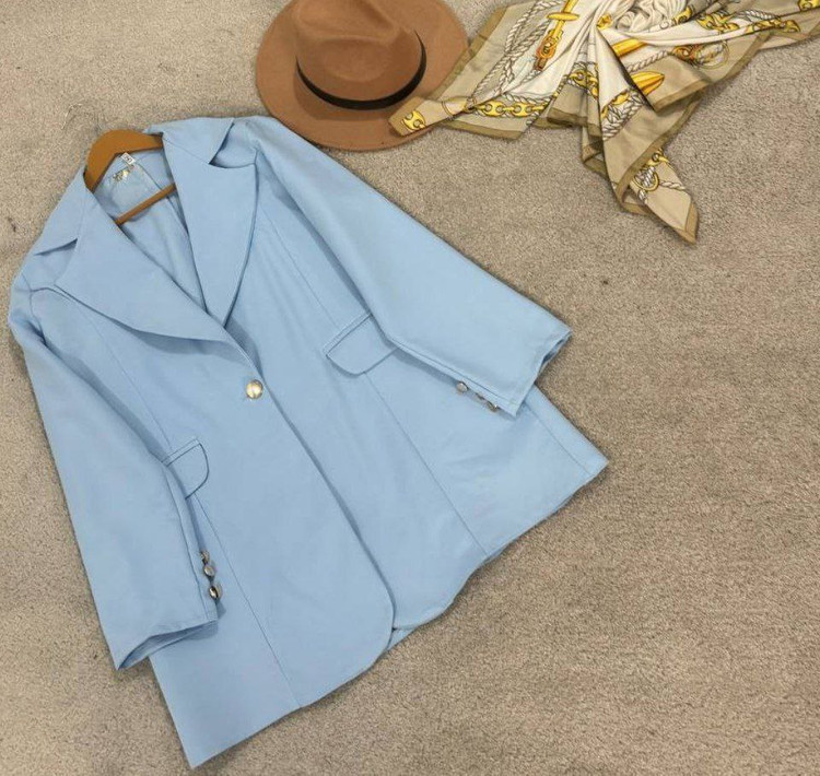 توضیحاتجنس : مازراتی ✅✅ 👪 سایز ها : فری تا 46 ✅ ✨دور سینه 105 ✨قد 80 ✨قد آستین 56 ✨جیب نما ✨دکمه بسته میشه 👌جلو کت کلا لایه کوبی شده