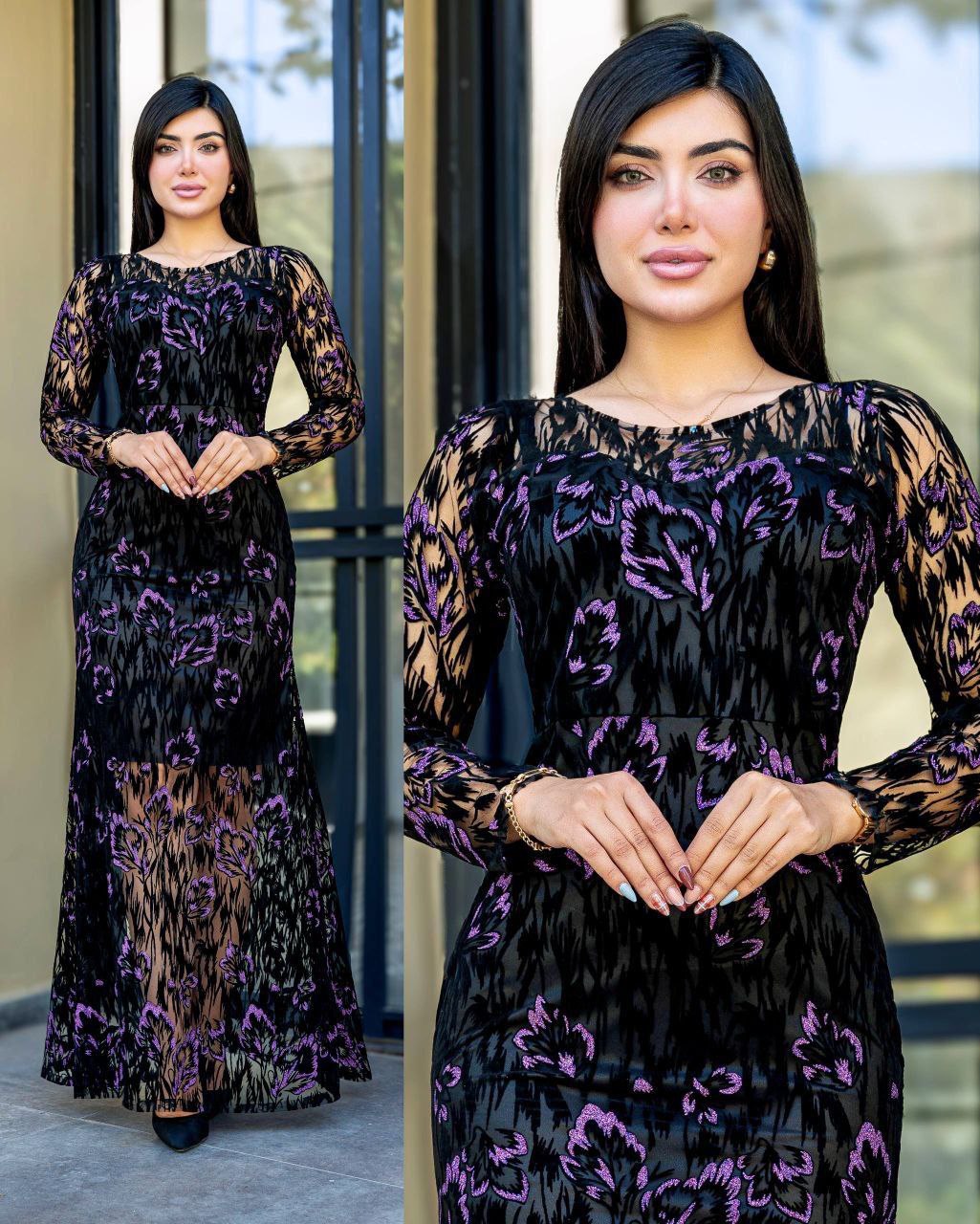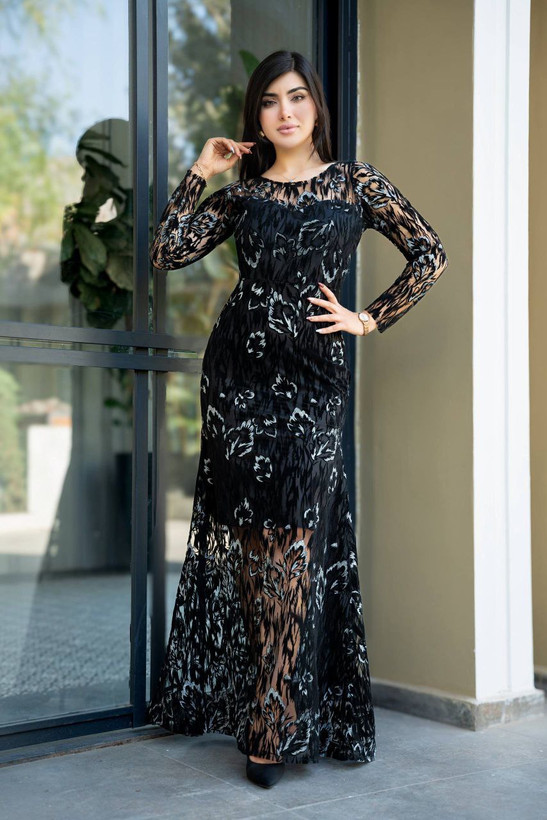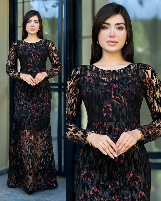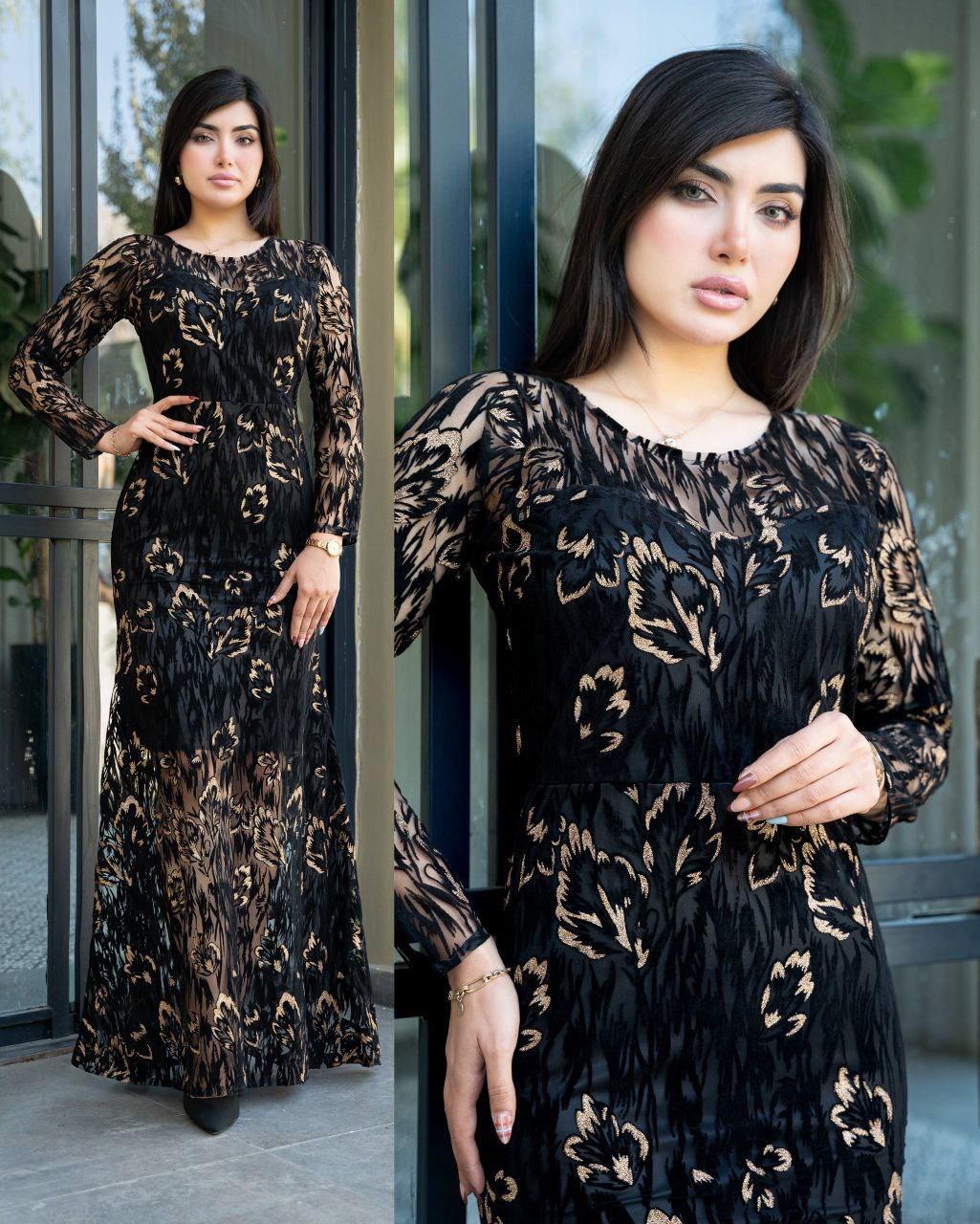 ماکسی مجلسی فلوک هیلدا طرح برگ