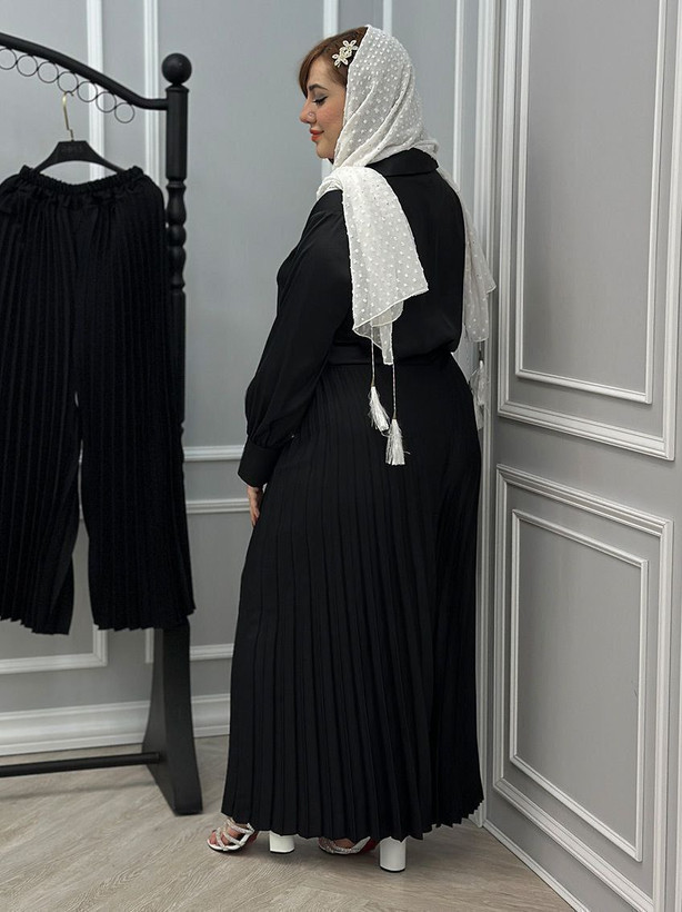 توضیحات❤️نام : دامنشلوار پلیسه ❤️جنس : کرپ ❤️رنگ بندی : مشکی ❤️سایز ها : فری38_48 ❤️ 🌹قد کار حدود ۱۰۰ سانت 🌹دور ران حدود ۸۰ سانت 🌹دمپا حدود ۷۰ سانت