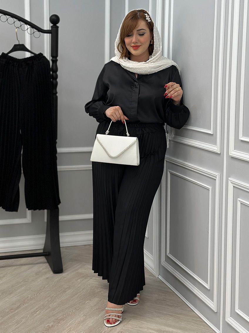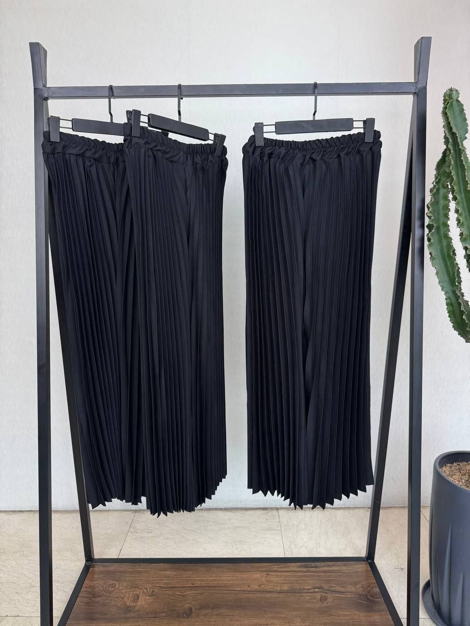 توضیحات❤️نام : دامنشلوار پلیسه ❤️جنس : کرپ ❤️رنگ بندی : مشکی ❤️سایز ها : فری38_48 ❤️ 🌹قد کار حدود ۱۰۰ سانت 🌹دور ران حدود ۸۰ سانت 🌹دمپا حدود ۷۰ سانت