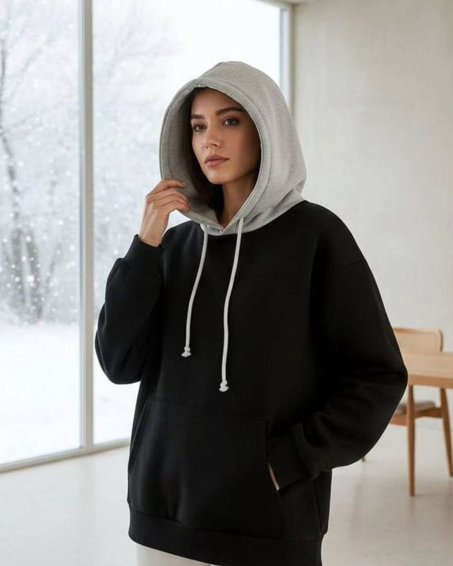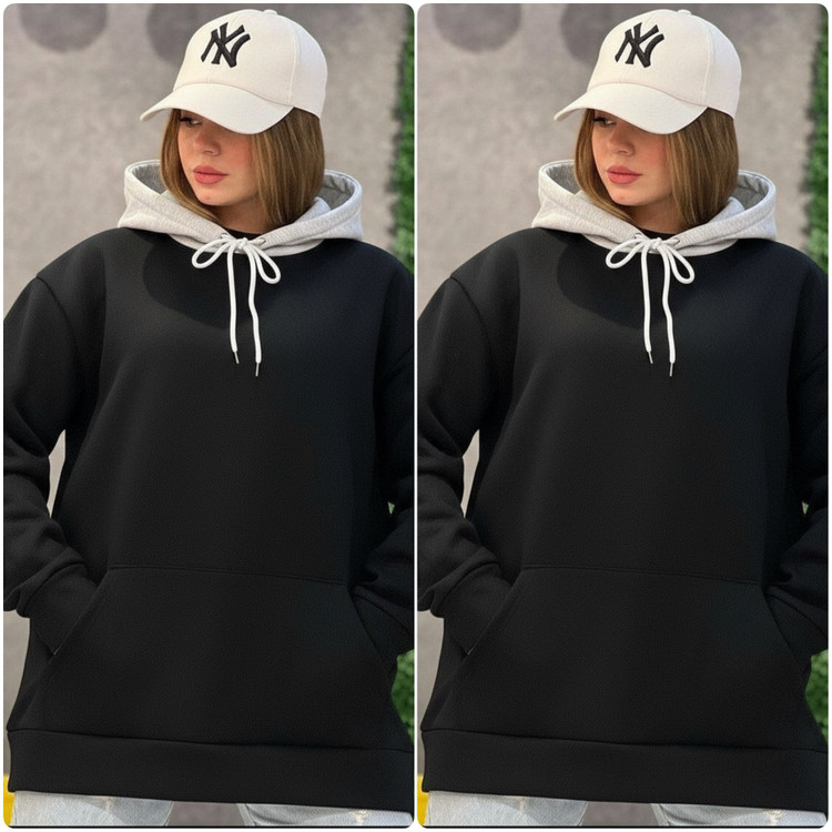 توضیحات🤩جنس : دورس تو کرکی کلاه ملانژ 🤩رنگ بندی : مشکی 🤩سایز ها : فری 36/46 🤩🌹قد هودی حدود ۷۰ سانت 🌹دورسینه حدود ۱۱۴ سانت 🌹قد آستین از سرشانه حدود ۶۲ سانت