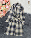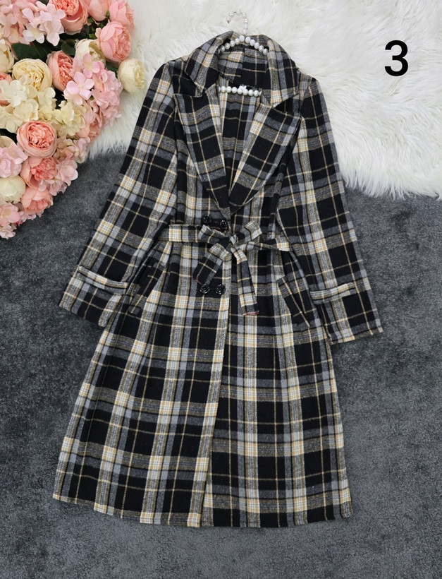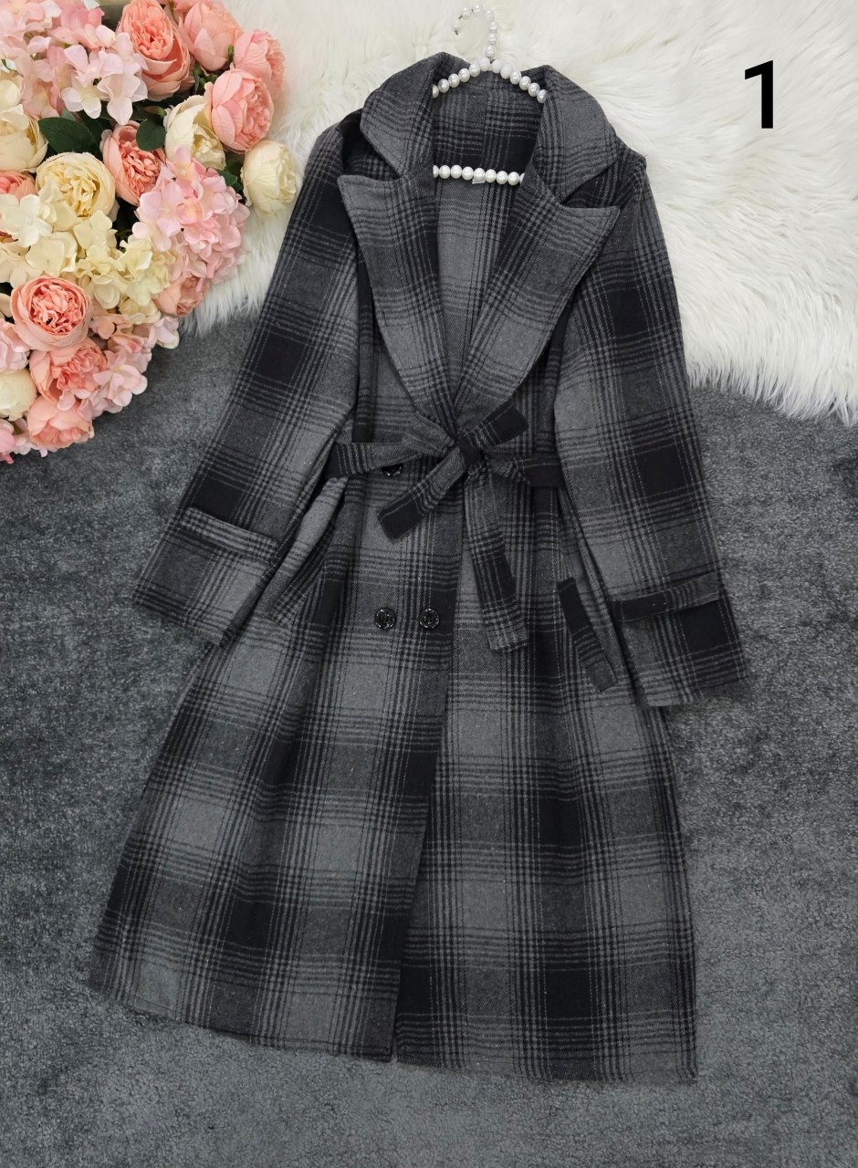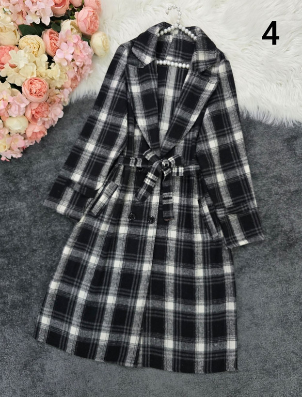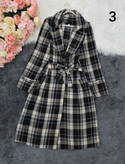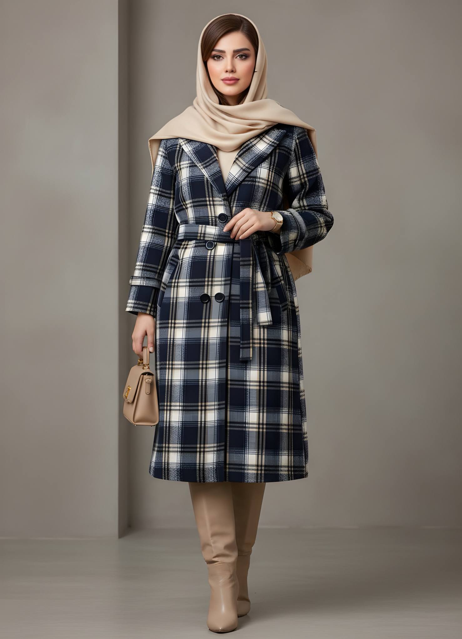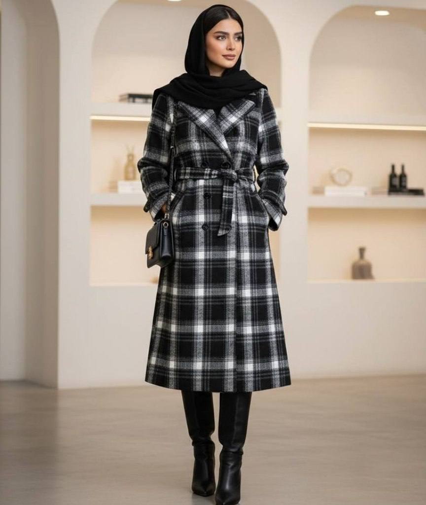 پالتو چهار خونه پشمی موهر دار کمربنددار