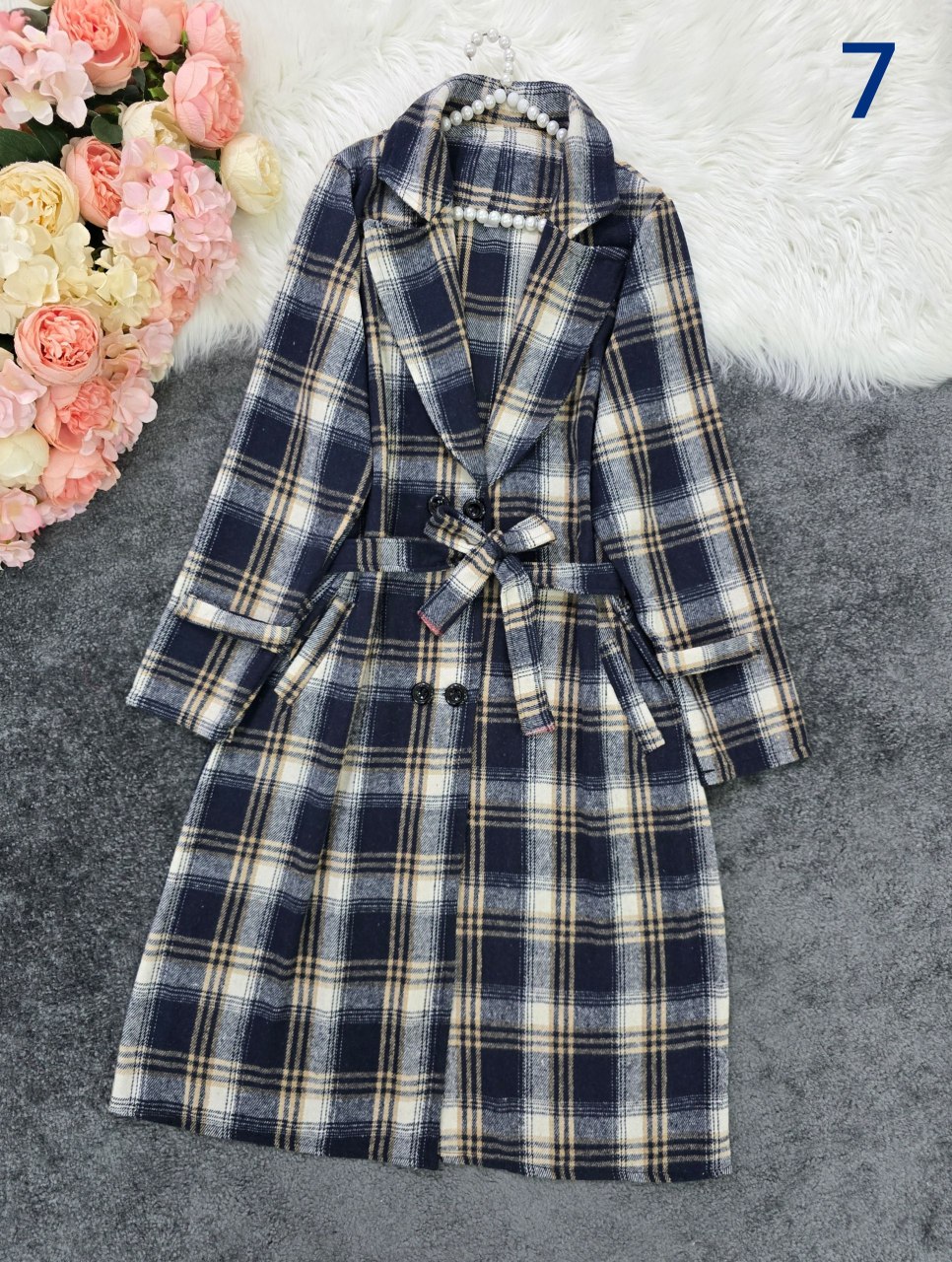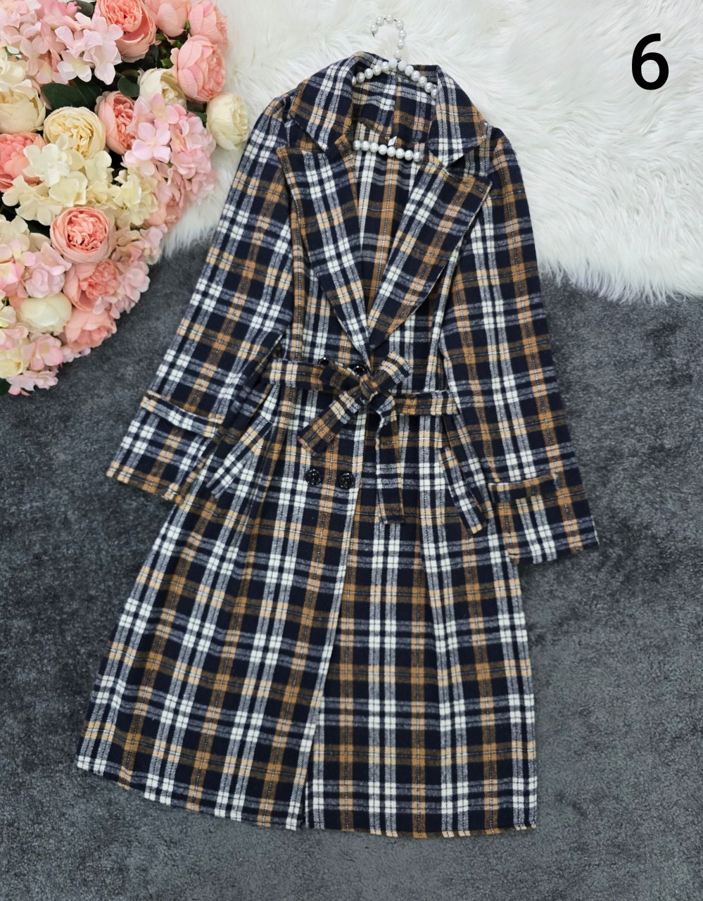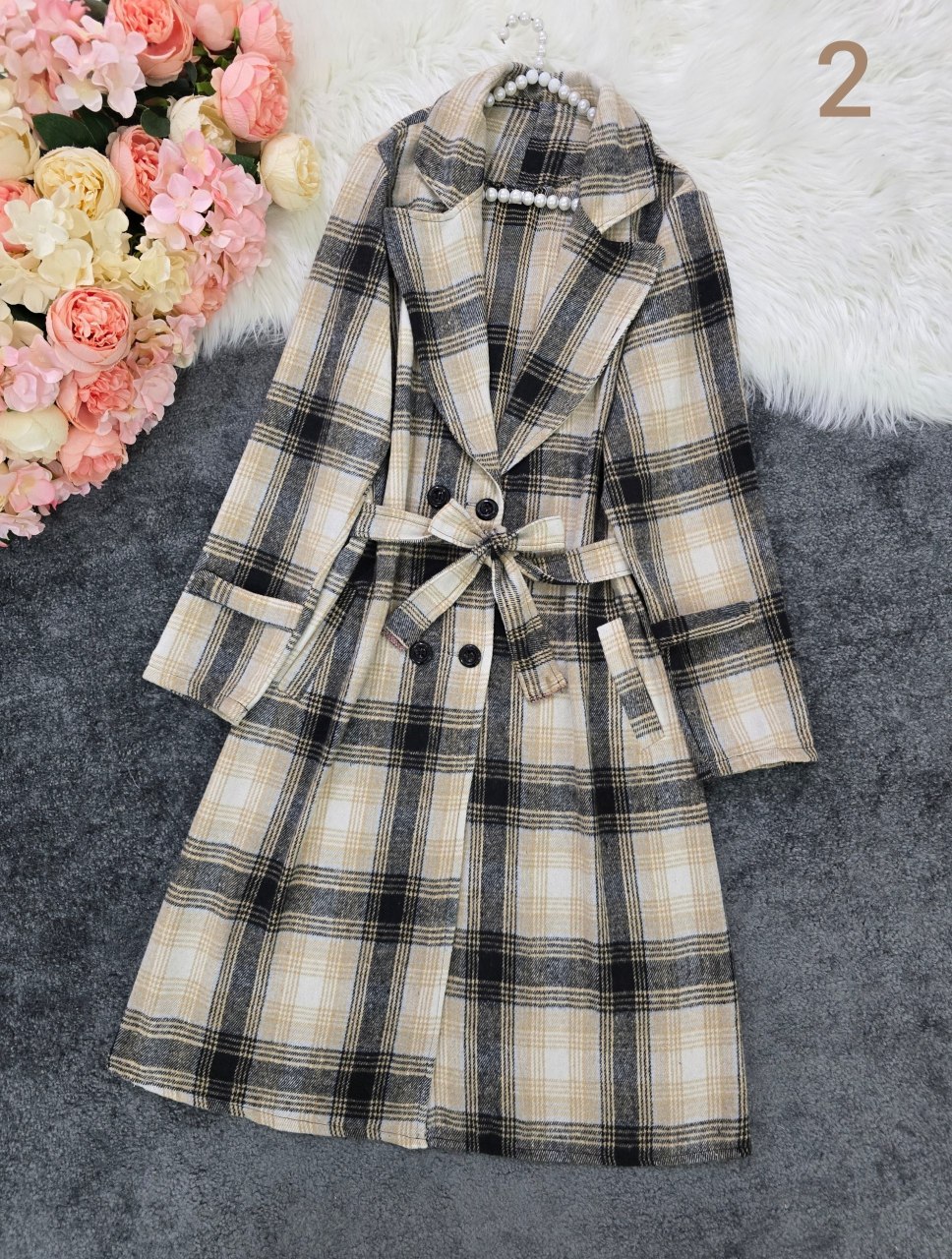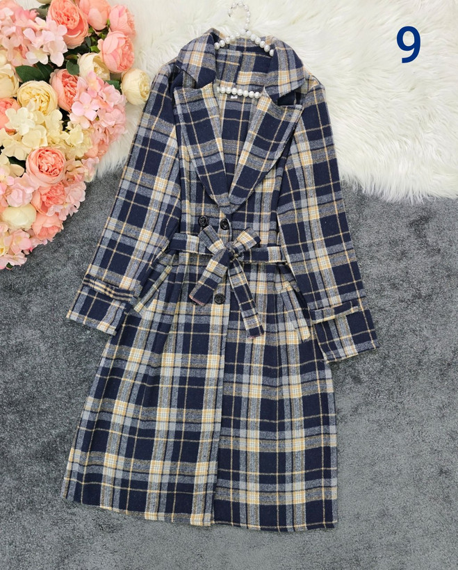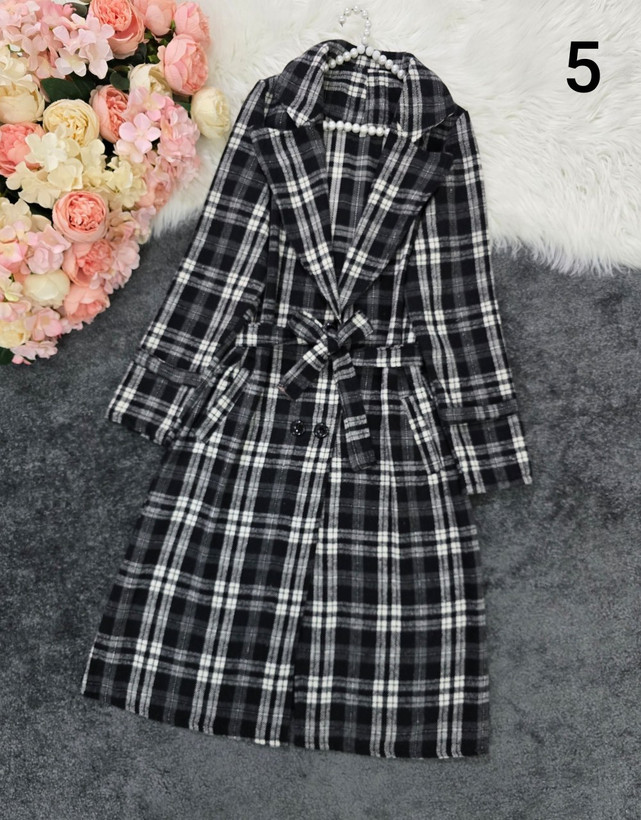پالتو چهار خونه پشمی موهر دار کمربنددار