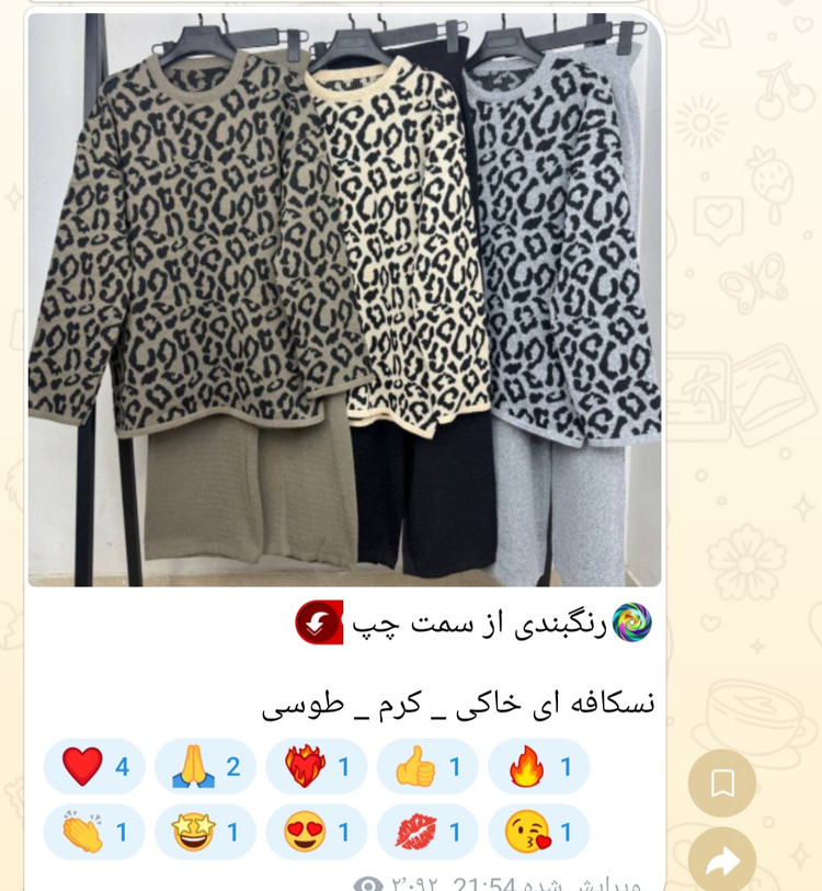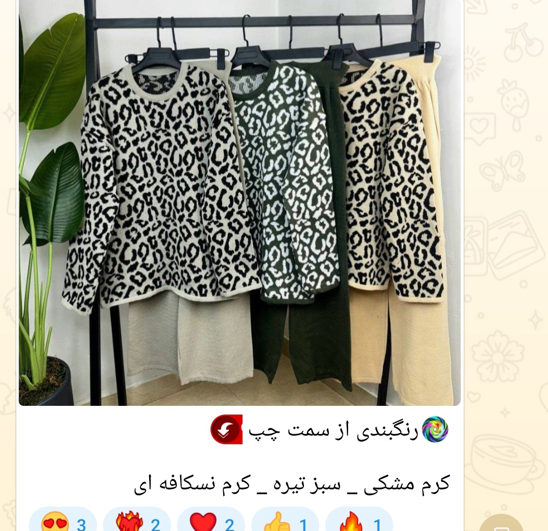توضیحات💞جنس : بافت درجه یک 💞سایز ها : فری38_46 💞 🌹قد بلوز حدود ۷۳ سانت 🌹دور سینه حدود ۱۱۰ سانت 🌹قد آستین از سرشانه حدود ۶۰ سانت 🌹قد شلوار حدود ۱۱۰ سانت 🌹دور ران حدود ۶۰ سانت 🌹دمپا حدود ۲۵ سانت
