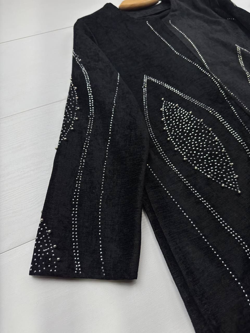 توضیحات💞جنس : مخمل باکیفیت 💞رنگ بندی : مشکی 💞سایز ها : فری38_46 💞 🌹قد کت حدود ۷۵ سانت 🌹دور سینه حدود ۱۱۰ سانت 🌹قد آستین حدود ۵۶ سانت