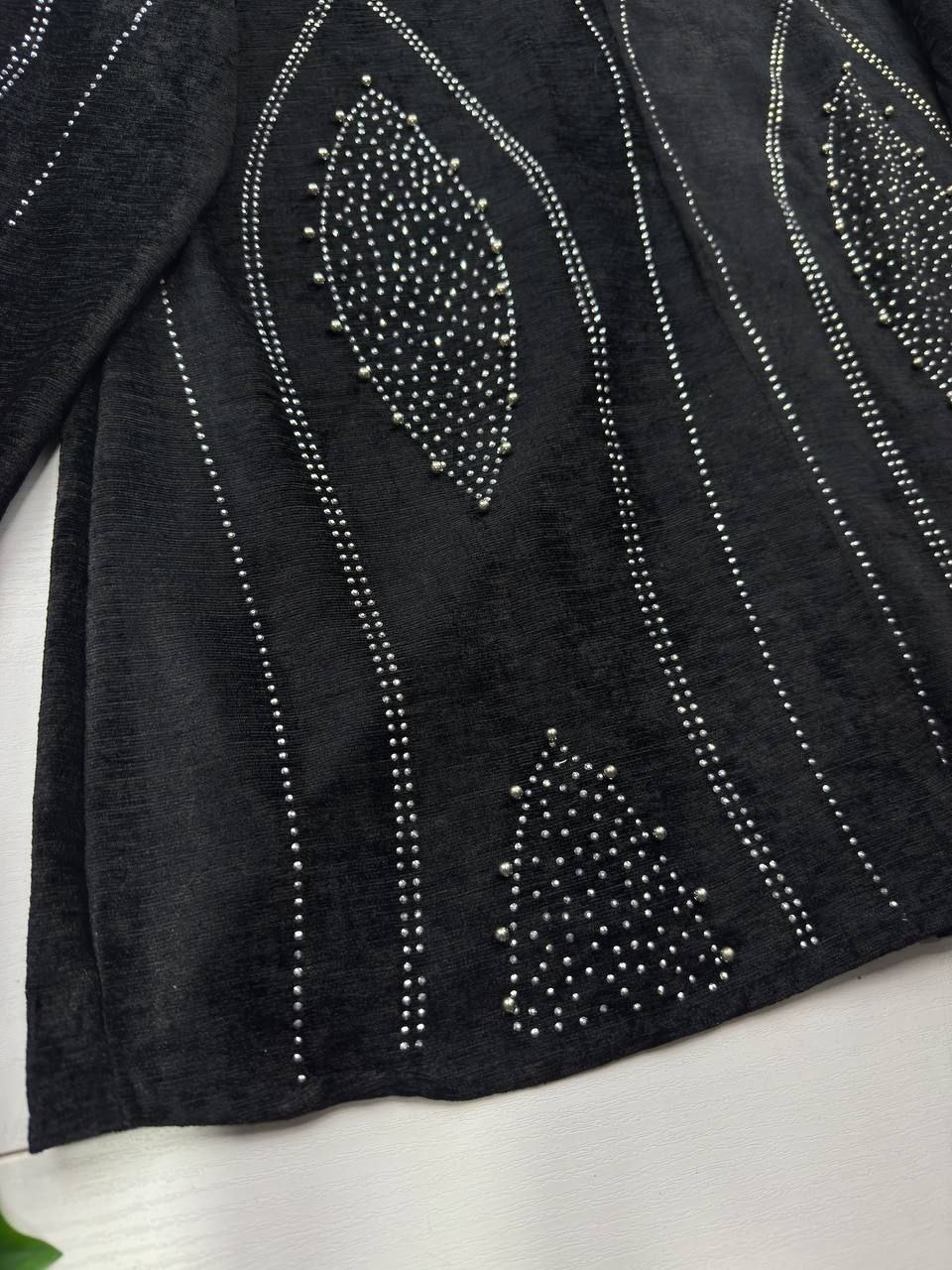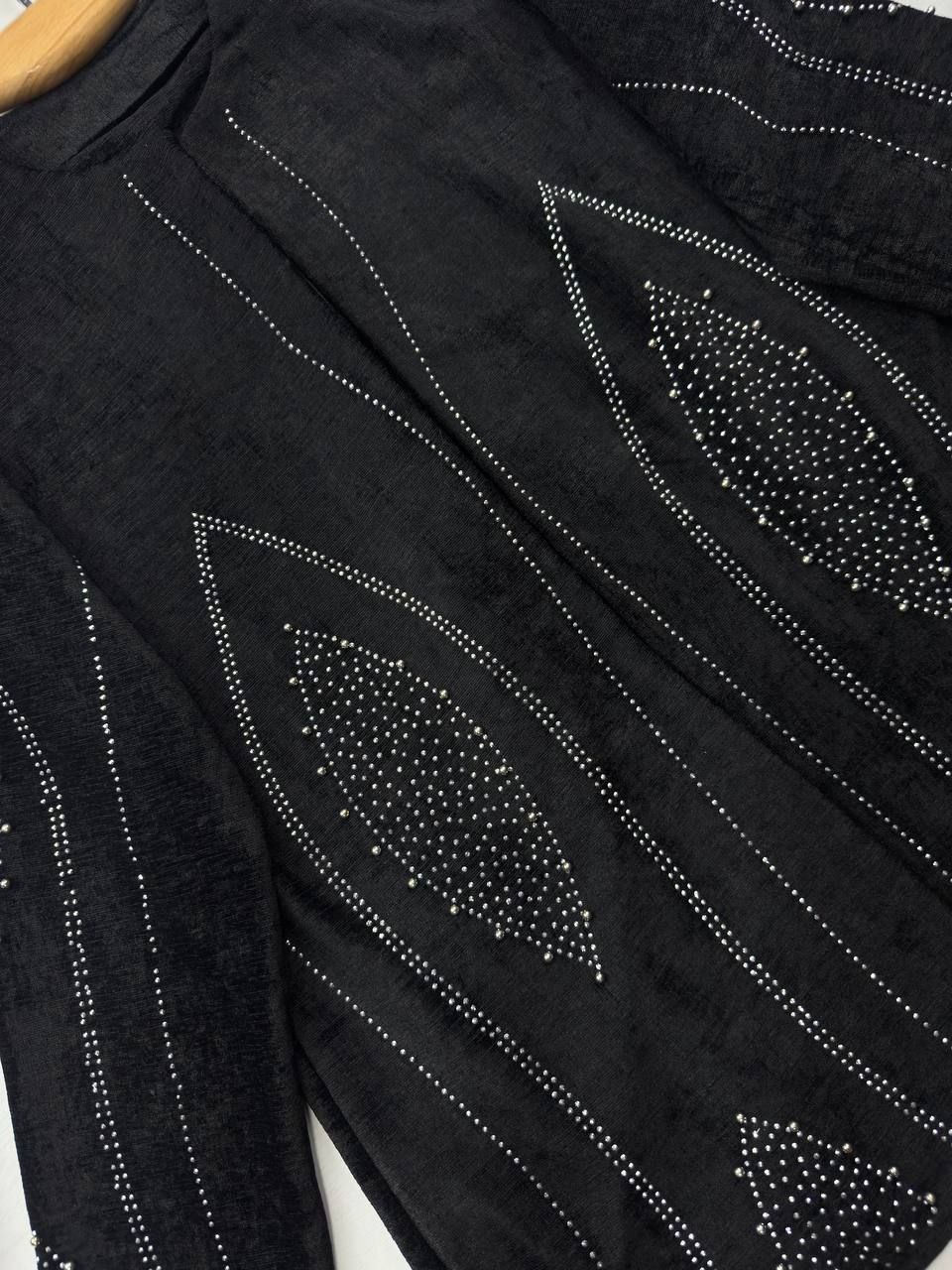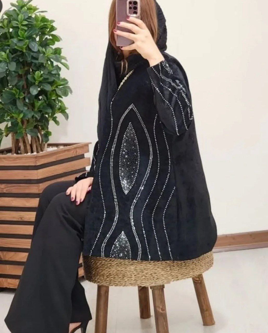 توضیحات💞جنس : مخمل باکیفیت 💞رنگ بندی : مشکی 💞سایز ها : فری38_46 💞 🌹قد کت حدود ۷۵ سانت 🌹دور سینه حدود ۱۱۰ سانت 🌹قد آستین حدود ۵۶ سانت