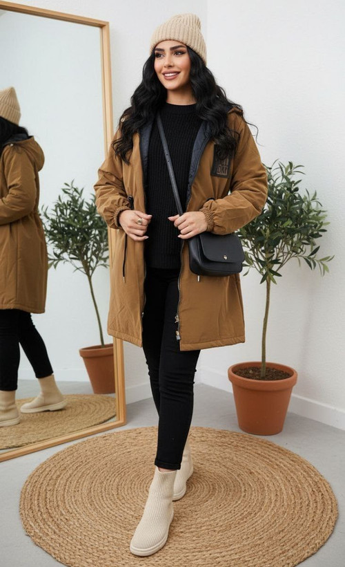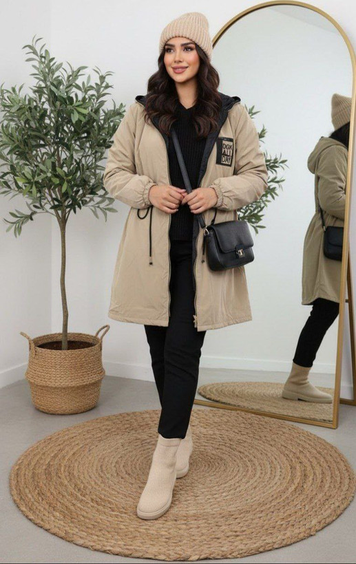 توضیحات💎قد حدود 75 💎قد آستین از یقه حدود 67 💎دور بازو حدود 40 💎دور سینه حدود 110 💎دور کمر حدود 107 💎دور باسن حدود 120 ✅فری سایز 38 تا 46 ✅کلاه دارد و به کار دوخته شده ✅
