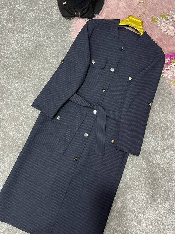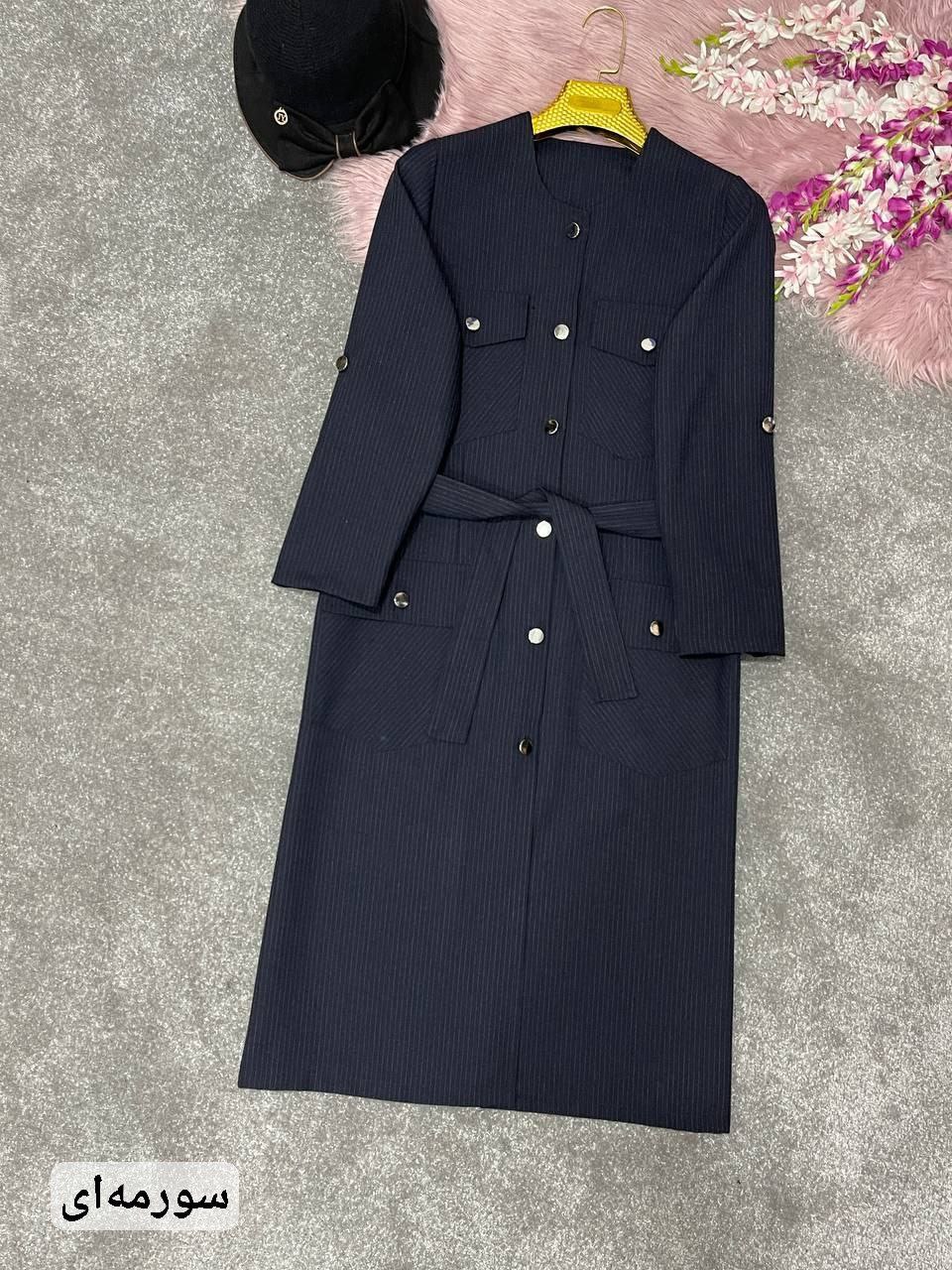 توضیحات🪡جنس : فاستونی دیپلمات👌🍂 ✔️ ⚜️سایز ها : ۳۸تا۴۲, ۴۴تا۴۸✔️ ✔️قدکارحدودا ۱۱۵ قداستین ۵۷ ⚜️دوربازوسایز۱=۴۲ دورسینه ۱۱۰ ⚜️دوربازوسایز۲=۴۴ دورسینه ۱۲۰ ✔️دارای جیب کاربردی ✔️کمربند جهت تنظیم سایز