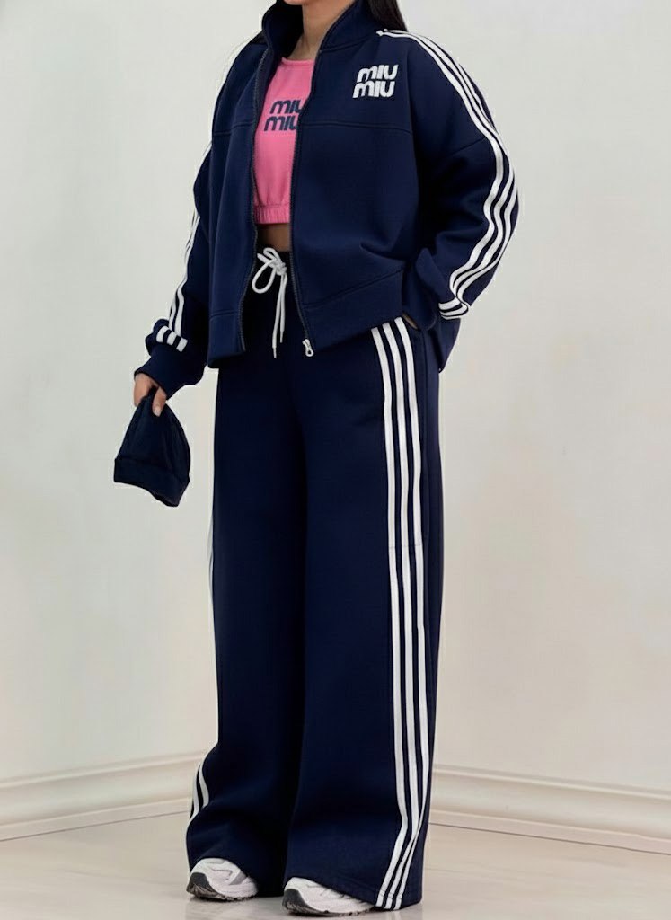 قد سوئیشرت حدود: ۶۹قد شلوار: ۱۰۷ روی قسمت سوئیشرت گلدوزی شده شلوار جیب دارد، دور کمر شلوار کش دارد و بند تنظیم(در خرید آنلاین ۲الی ۳درجه تغییر رنگ رو در نظر بگیرید❌