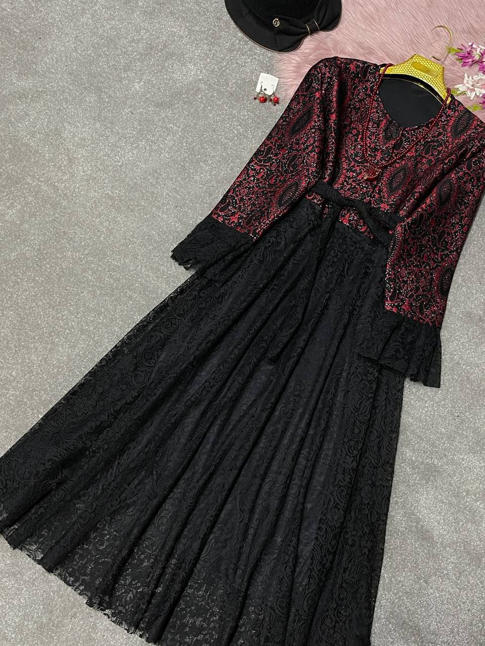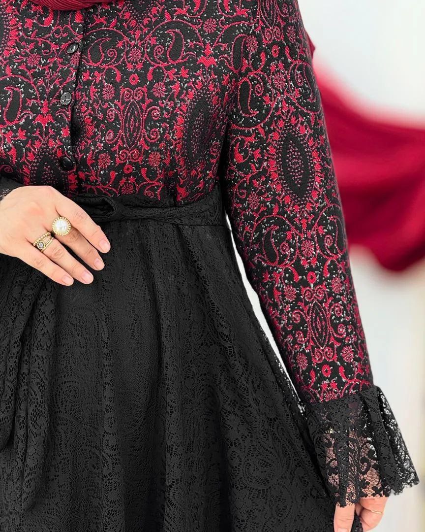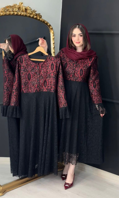 پیراهن یلدایی تافته و دانتل مدل فروغ