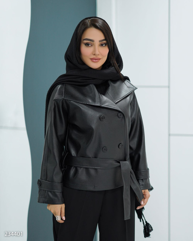 توضیحاتسایز 1 مناسب: 36 تا 40 🔺سایز 2 مناسب: 42 تا 46 🏷دور سینه سایز 1: 106 🏷دور سینه سایز 2: 114 🔸جنس پارچه: چرم 🔸مدل یقه : پهن 🔸آستردار 🔸سراستین پاگون دار 🔸قد : 57