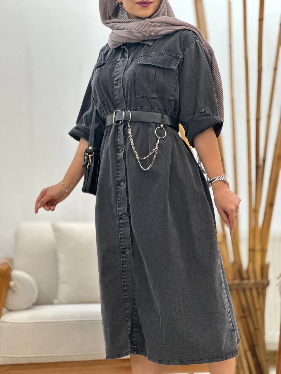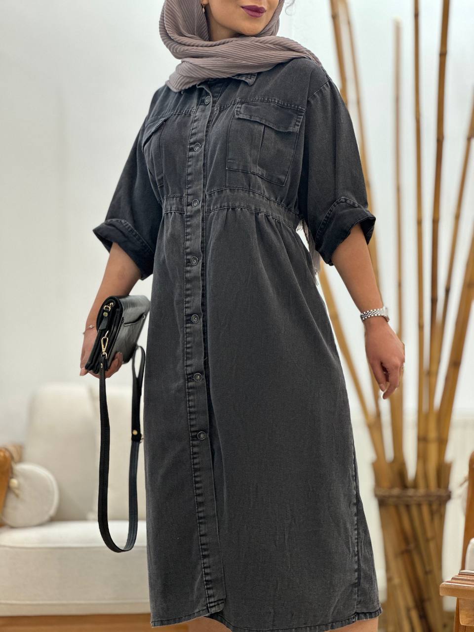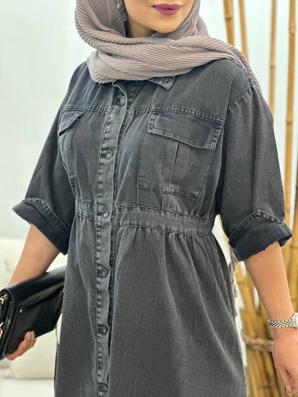 ماکسی دکمه دار جین اصل سنگشور شده